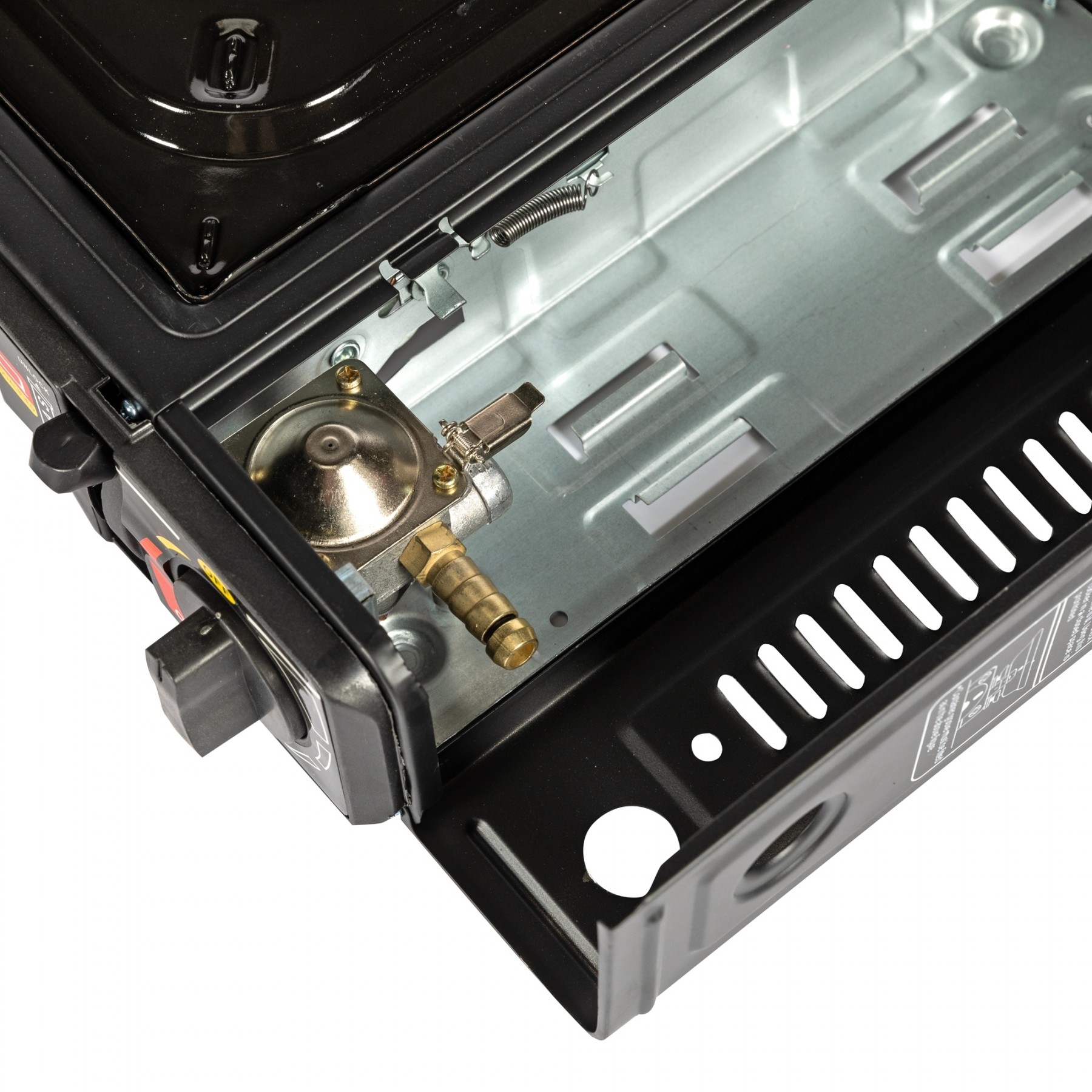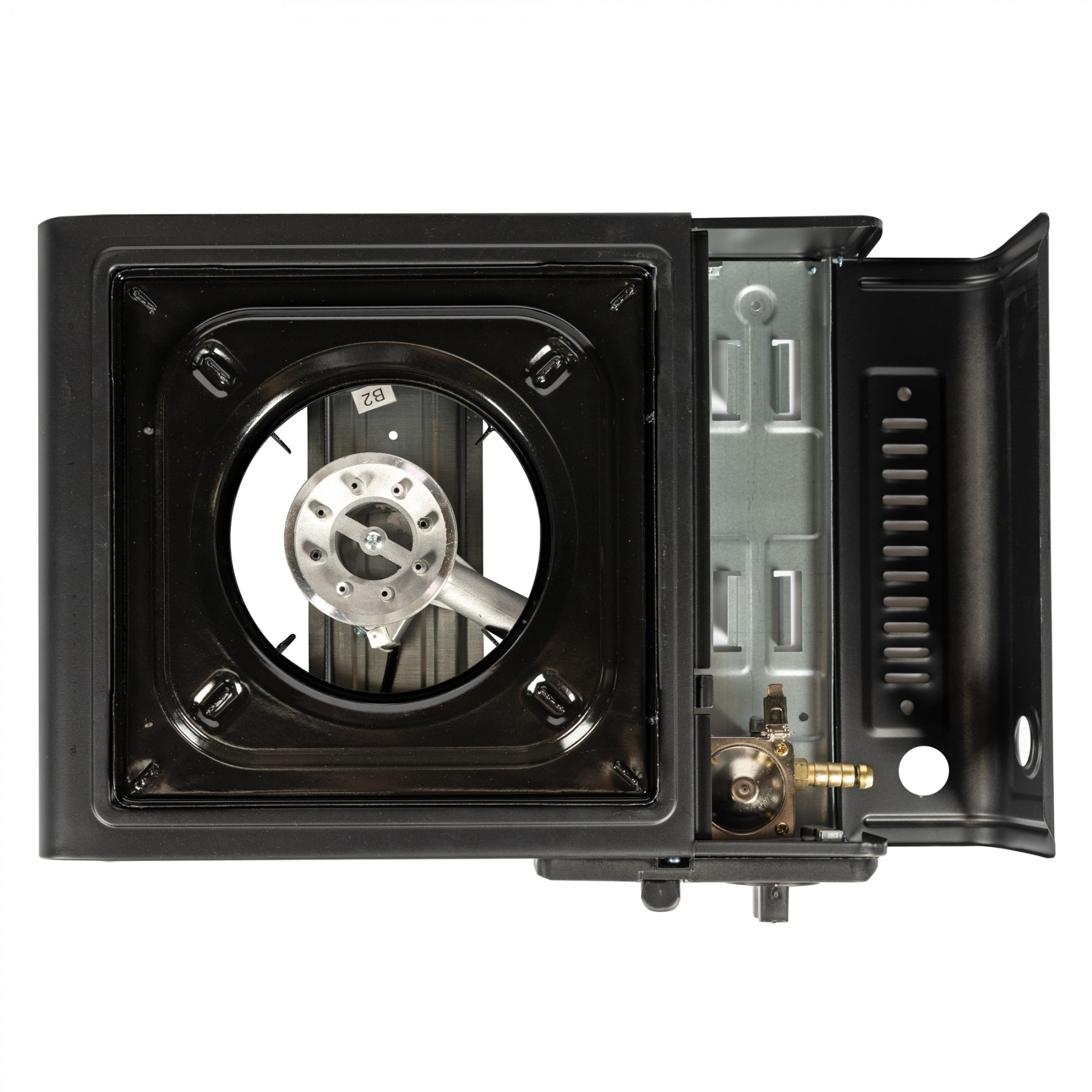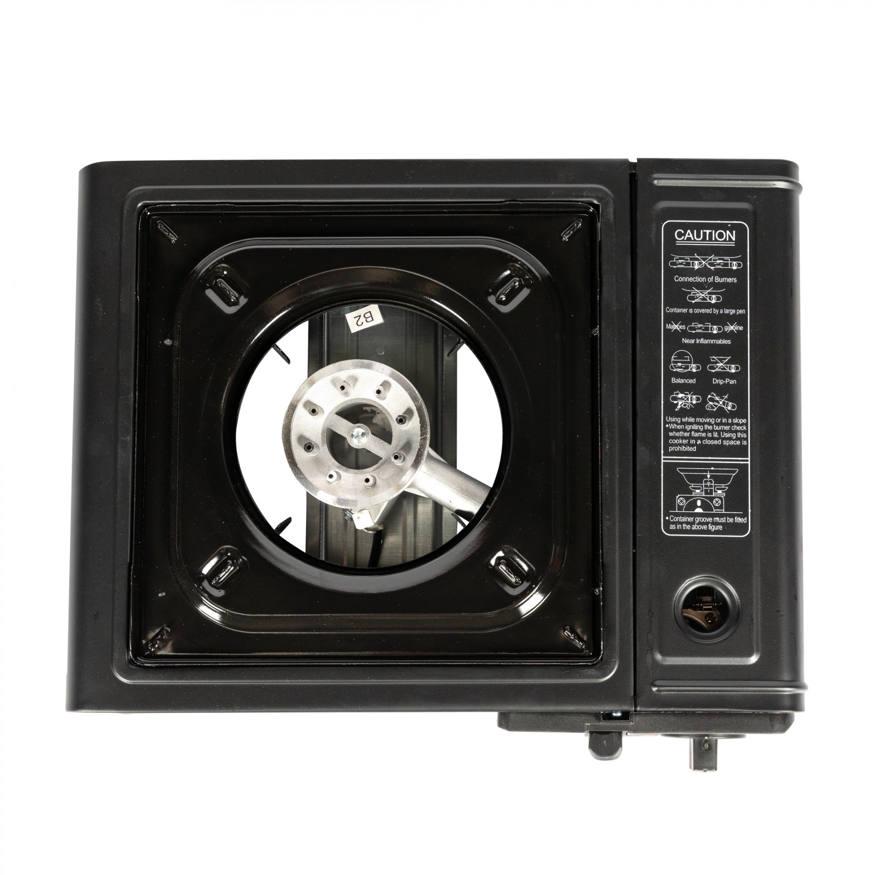 Aragazul SYNO este livrat cu cutie de plastic cu maner pentru transport facil si depozitare sigura.