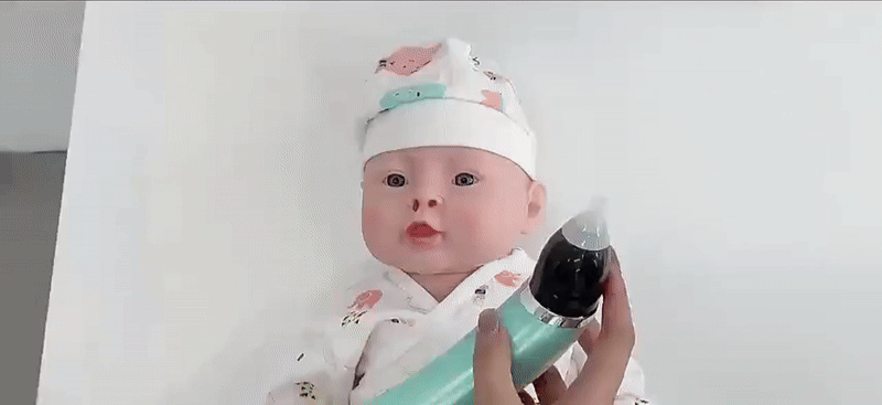2. Instalati aspiratorul nazal, puneti capatul de silicon potrivit varstei copilului si deschideti comutatorul.