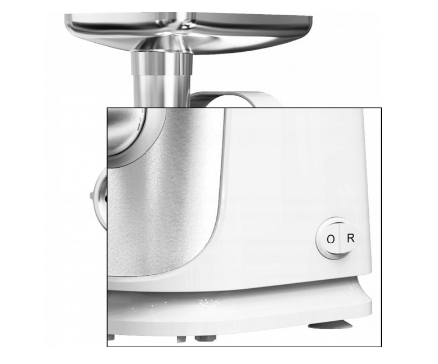 Cu ajutorul functiei reverse scapati de grija blocarii alimentelor in masina de tocat. Prin aparasarea butonului reverse, melcul se roteste in directie opusa si aparatul preia operatiunea.