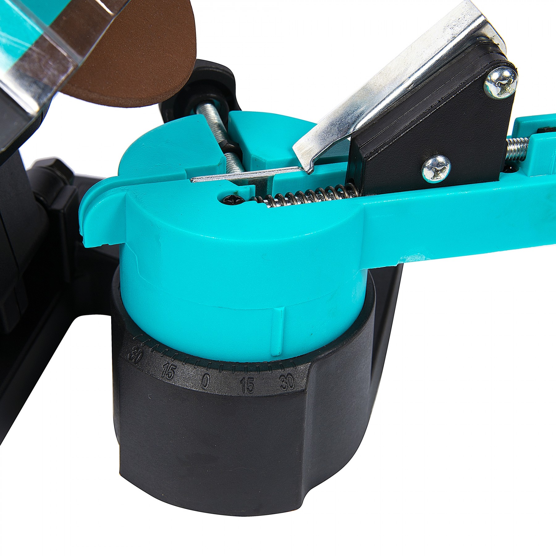La baza acesteia este atasata o placa turnata care este instalata la unghiul dorit, in functie de parametrii dintilor de drujba.