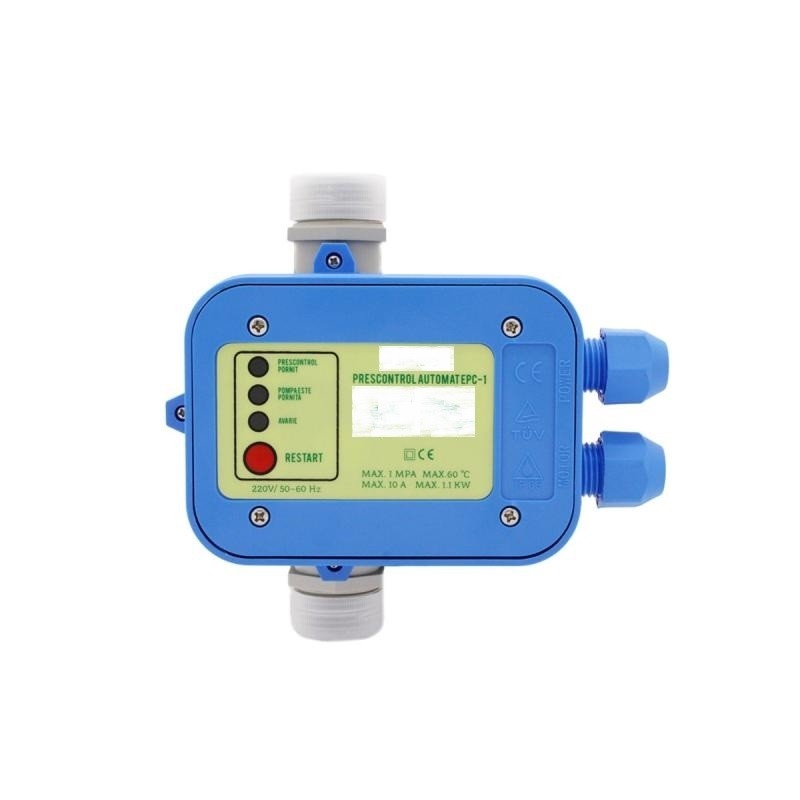 Presostat Electronic EPC-1 ,1 Tol, 1.1kw. Prescontrolul sau presostatul electronic e un dispozitiv nou ce caranteaza protectia si controlul optim al pompelor de uz casnic.