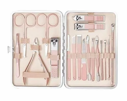 Îngrijește-ți unghiile complet cu acest set profesional 18 în 1, care include foarfece, pile, unelte pentru cuticule și accesorii pentru manichiură și pedichiură. Compact și organizat, este ideal atât pentru uz personal, cât și profesional.