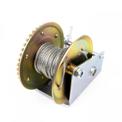 Troliul este echipat cu un cablu otelit impletit si o frana activa cu clichet, asigurand astfel o mentinere ferma si o siguranta a transportului marfii ridicate.