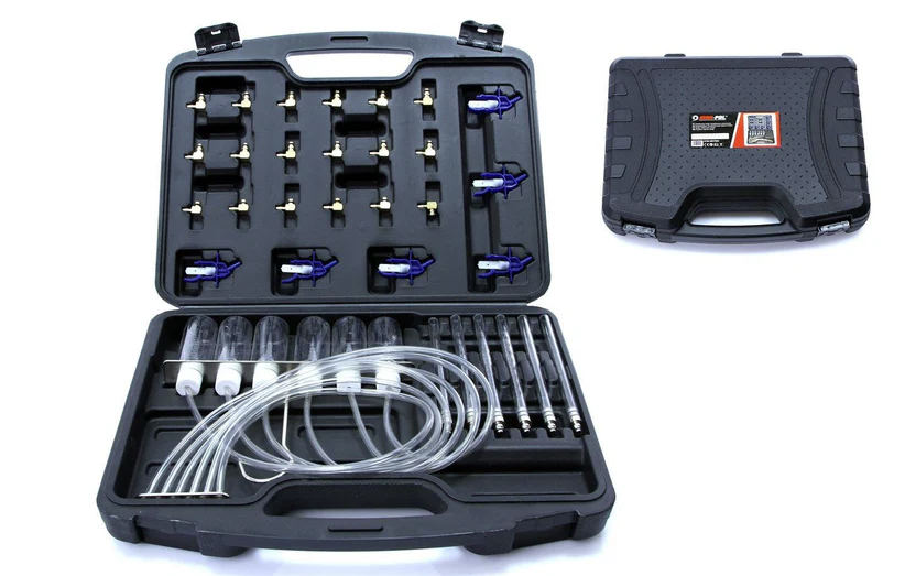 Trusa testare injectoare common-rail 31 piese poate testa până la 6 injectoare în același timp.
